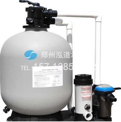 过滤器是利用特殊的滤沙将池中的微小污物消除。滤沙作为清除污物的介质,被装填在过滤器内的腔体内。当控制旋钮打到“FILTER位置时,含有悬浮的污物微粒的池水由泵压入过滤管路中,再由控制开关的引导到达过滤器的出水口。池水经过过滤器,微小的污物被沙床捕集滤除掉。过滤后的清水由过滤器底部经控制开关再由