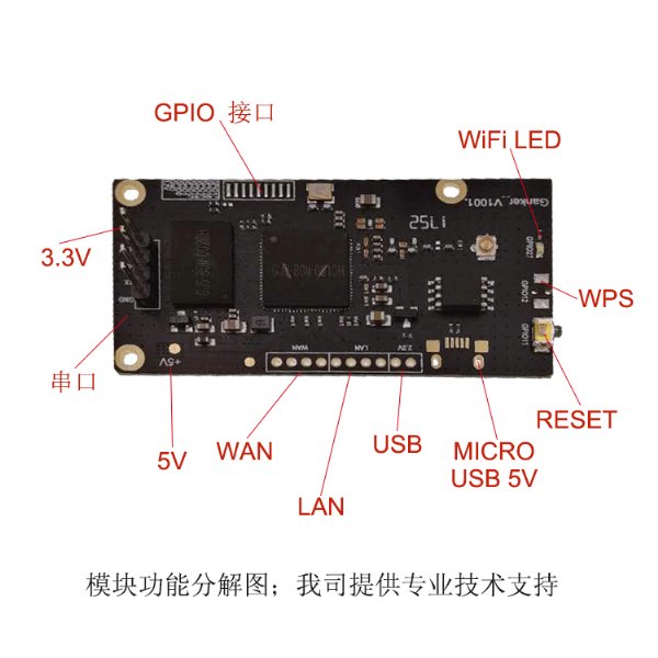 芯片方案:XB9331M 802.11b/g/n 150M内置无线路由模块方案是采 ATHEROS AR9531芯片,芯片整合了MIPS 24K 处理器,主频550MHZ、Switch(MAC,PHY部分)以及集成了无线部分的 MAC、RF、PA、LNA部分,功能强大,集成度高