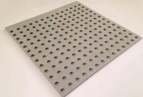 水泥板为基板,经过专业冲孔设备流水穿孔而成的新型室内吸音板材产品,硅酸钙板或