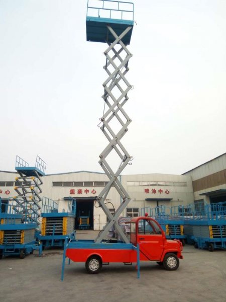 车载剪叉式升降工作平台:以车辆为行走机构,安装在车辆上的剪叉式升降工作平台。按照《中华人民共和国机械行业标准》,车载剪叉式升降工作平台按照行走方式,应划入移动剪叉式升降工作平台内,但行业内习惯于单独将此类称为车载剪叉式升降工作平台。
