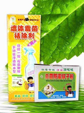 杀菌剂 , 无色 * 无味, 广泛的应用墙面的各种霉菌及泛黄现象 .针对墙体表面生成的霉菌 ,只需轻轻一喷霉菌迅速分解 ,杀灭 15-30分钟内让墙体恢复原由本色. 不破坏墙体 并在喷过后的部位会有淡淡的清香气味 ,在墙体表面形成一道即透气又憎水的呼吸界面隐性