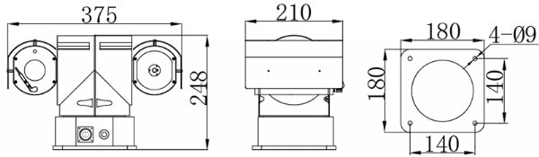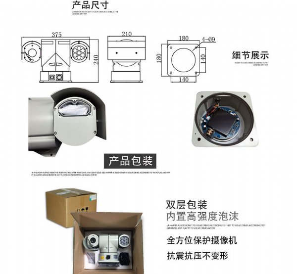 云台采用全天候环境设计,高强度铝合金精铸外壳,带遮阳罩,带雨刷