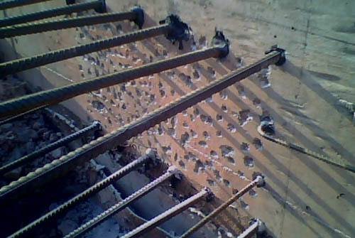 1、根据工程设计要求,在基材上相应位置钻孔,孔径、孔深及钢筋直径应根据施工设计要求或现场实验确定。