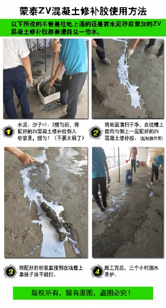 1. 配好的混凝土可达55mpa以上,具备良好的韧性、粘接性、抗裂性。
