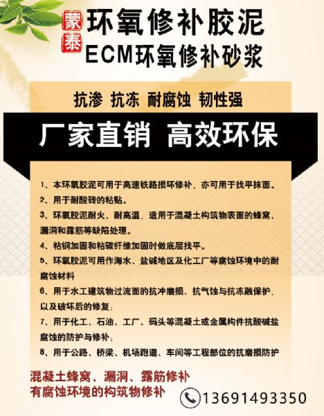 该产品主要适用于混凝土结构的空洞、蜂窝、破损、剥落、露筋等表面损伤部分的修复,以回复混凝土结构良好的使用性能。也可作为