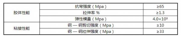 1、本品强度高,特别是“钢-钢”粘接抗剪强度及“钢-混凝土”粘接抗剪强度高,具有良好的韧性及抗冲击性能。