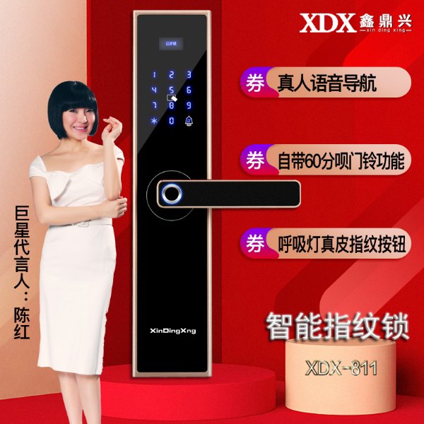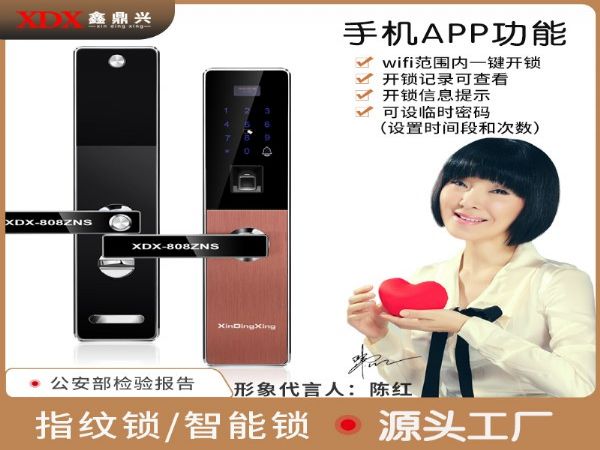 指纹锁,指纹一点即开,无需把手开门,关门一按反锁键即可反锁。