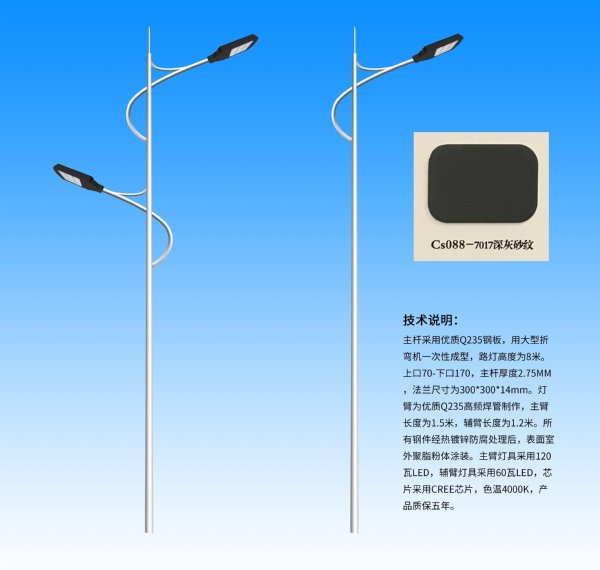 螺栓固定就可。 市电路灯施工中有复杂的作业程序。首先要辅设电缆,挖沟布管、管内穿线、回填等大量土建施工,消耗大量人力、物力、财力。*后还要进行调试,一旦出现问题,就造成很大消耗。