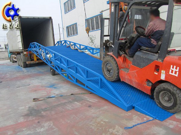 叉车配合使用的货物装卸辅助设备,可根据汽车车厢的高低调节高度,叉车可以直接通过本设备驶入车厢内部进行货物的批量装卸,仅需单人作业,即可实现货物的快速装卸。它使企业减少大量劳力,提高工作效率,获取更大经济效益。