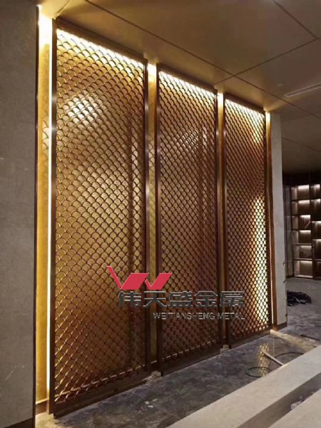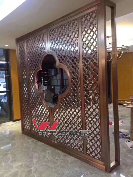 屏风主要是安装在酒店和饭店等场所的餐饮区、休息区区域,以用于隔断群众,有一丝隐私感,也起到了很好的一个装饰作用。这一款屏风图案较为复杂,如果用焊接工艺制造会非常困难,包括制造过程中的焊接角度不够、人工成本较高,*后决定使用8mm不锈