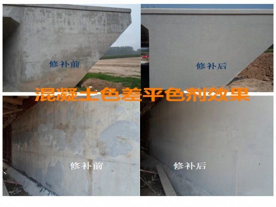 混凝土色差调整剂可以有效地解决混凝土表层颜色色差现象,涂刷后,仍保留混凝土表面固有的自然、朴素的风格,使混凝土表层颜色均匀一致。同时能够遮蔽混凝土表面的微细裂纹,增加混凝土表层整体美观度,提高结构的耐久性。