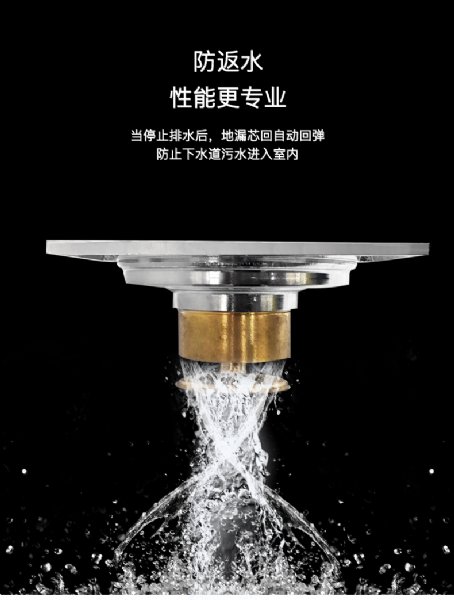 芯回自动回弹,防止下水道污水进入室内。