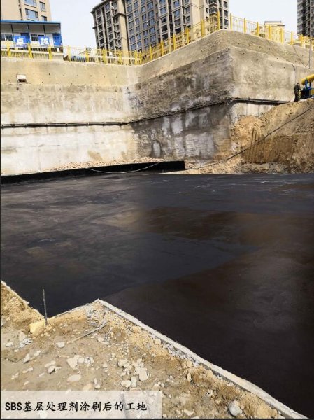 SBS基层处理剂不得在雨天,大风条件下施工,施工完毕应进行全面检查,及时修补,一周内不得在防水层堆东西,不能在上面行走。