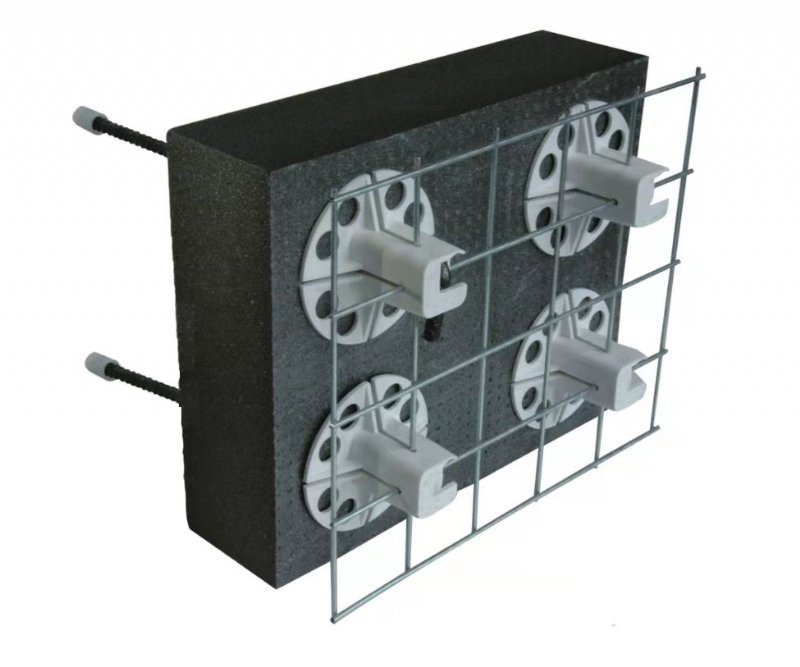 产品简介:GES内置套筒连接钢网复合保温系统是于施工现场在平面钢网保温板两侧同时浇筑混凝土结构层、防护层,通过*