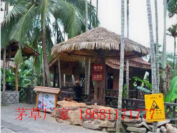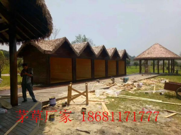 仿茅草与仿真茅草施工后的防火防虫处理与维护 茅草具有较强的易燃性,一旦引燃,不易扑灭,因此,采取行之有效的防火措施至关重要。厚厚的茅草是昆虫理想的栖息和繁殖的基地,而且其遭虫吃的危害性很大,在防虫措施上,一方面要进行喷洒除虫剂,一方面要做好茅草的清洁维护。