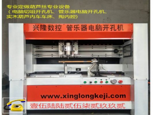 本机可任意加工孔径的音孔,音孔形状可以做圆孔、椭圆孔、长孔、通孔、半通孔、片平台、片切口....所有孔、平台一次加工,电脑控制管子在机器上360度旋转,径孔距离位置标准,极大方便了校音师校音,使校音效率得到了巨大提高。