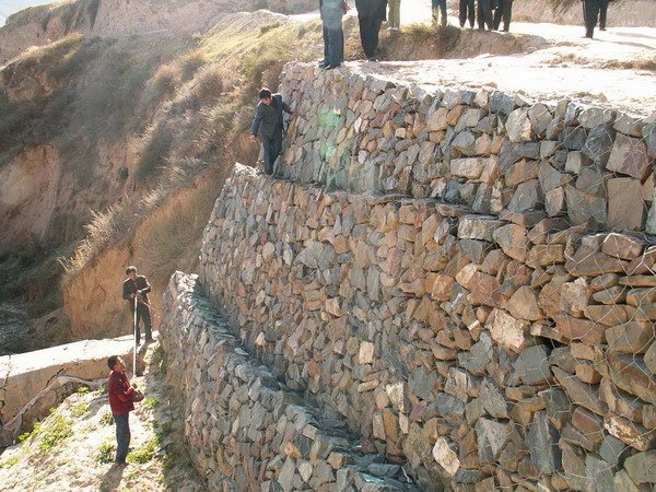 钢丝作笼,石子填充,看起来简单,然而这样刚柔并济的结构却是大智慧的结晶,它能够起到长久性的保护作用,在水流的冲刷下,石块与石笼网间会越来越紧密,从而使结构更加牢固,冲刷过程中水流和石子间的摩擦减缓了水流 的能量,从而降低了破坏力。