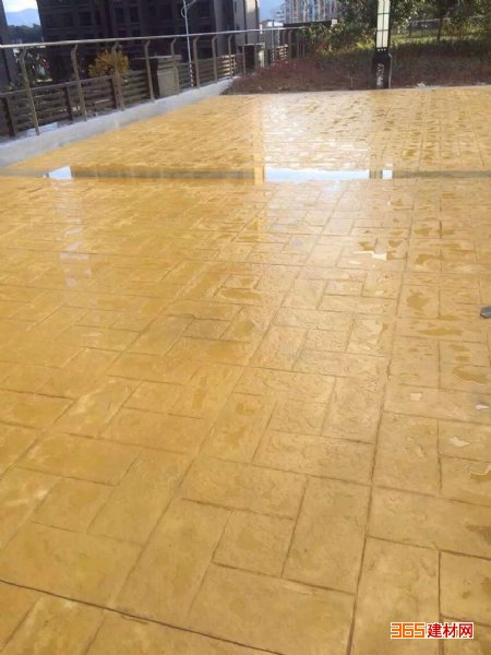 6、实现色彩交互:待封闭压花地坪一至两天完全硬化后,再使用洗衣粉或洗洁精将其表面的脱模剂冲洗,冲洗完毕的地坪乃留有15%左右的脱模粉,这些脱模粉大都分布在久彩压花地坪陷入的部位,能增加仿石压花地坪的立体感、层次感和色彩渐变。待压花地坪表面完全干透后,即使用*保护剂封闭压花地坪表面,使仿石压花地坪出现