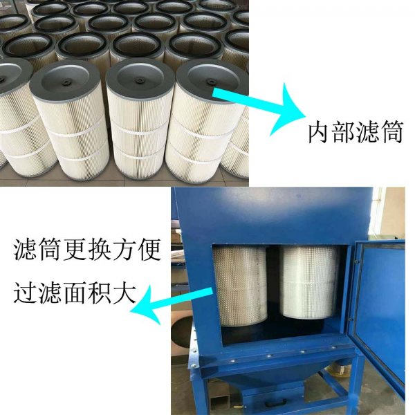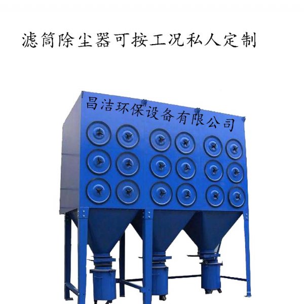 滤筒式除尘器的阻力随滤料表面粉尘层厚度的增加而增大,阻力达到某一规定值时进行清灰。此时