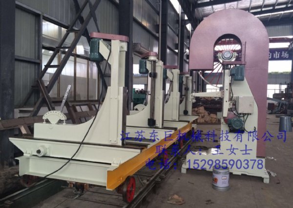 木工带锯机(如图)提供报价;江苏东巨自动带锯跑车配套出售高效生产;本厂家生产带锯机为系列产品型号齐全;该系列木工带锯机适用于将圆木锯切成方料或板材,可与跑车配套使用,灵活性好,操作调整方便,生产效率高,使用广泛等特点,是木材加工企业的优质产品。