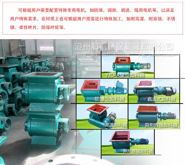 卸料器用于安装在负压下工作的卸料器的排料口处,上部接受卸料器排出的物料,依靠旋转的叶轮起着输送物料的作用,又担负着密封的作用,防止气力输送过程中从排料口吸入空气,保证卸料器的正常排料做为一种特殊的卸料装备,在清洁和清洗工作中起到了很大的作用。所以我们有必要总结一下它的一些特点,这样就可以更好的对