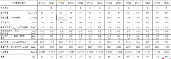 柱塞泵有带标准压力调节器和带功率调节器两种选择。*大排量从16至270ml/rev,额定工作压力为350bar,*高转速为每分钟300转,泄油口朝上。型号有:PV016,PV020,PV023,PV032,PV040,PV046,PV063,PV080,PV092,PV140,PV180,PV270等。