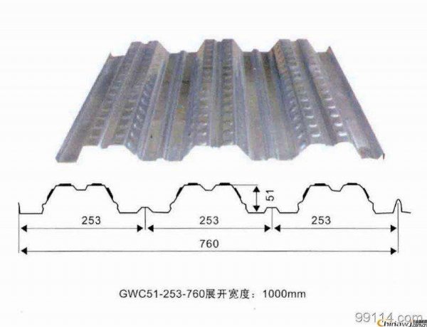 压型钢板并将栓钉、钢板均焊牢于钢梁上。栓钉密度应由结构设计确定。在局部地区由于加密栓钉也无法满足时,可以再梁中设计抗剪键以增加混凝土与楼板的裹握程度。开口时压型板厂家生产定做,YX51-253-760 型号,用料宽度是:1000mm ,生产厚度0.7,,-1.2mm 。我们还配套供应高强