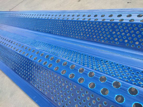 玻璃钢防风抑尘网是采用新型的玻璃钢树脂材料,按照生产工艺可分为拉挤和模压两种生产方式,而拉挤玻璃钢挡风墙嘴合适的使用厚度在2mm左右,利用空气动力学原理,按照实施现场环境风洞实验结果加工成一定几何形状的挡风板,并根据现场条件将挡风板组合成挡风抑尘墙,使流通的空气(强风)从外通过墙体时,在墙体内侧形成上、下干扰的气流以达到外侧强风,内侧弱风,外侧小风,内侧无风的效果,从而防止粉尘的飞扬。