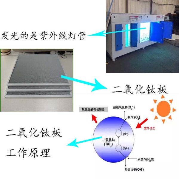喷淋塔用水喷淋过滤掉废气中的漆雾再经过光氧废气净化器降解废气中的有味气体。光氧废气净化器工作原理:1.本产品利用特质的高能光束照射恶臭气体,裂解恶臭气体如:氨、三甲胺、硫化氢、甲流氢、甲硫醇、甲硫醚、二甲二硫、二硫化碳和苯乙烯、硫化物H2S、VOC类,笨、甲苯、二甲苯的份子链结构,使有机物或无机高分子恶臭化合物分子链,在高能紫外线光束照射下,降解转变成低分子化合物,如CO2、H20等。2.利用高能高臭氧UV紫外线光束分解空气中的氧分子产生游离氧,即活性氧,因游离氧所携正负电子不平衡所以需与氧分子结合,进而产生臭氧。UV 02-o- o*(活性氧)o o2-03(臭氧),从所周知臭氧对有机物具有极强的氧化作用,对恶臭气体及其它刺激行异味有立竿见影的清楚效果。3.恶臭气体利用排风设备输入到被你精华设备后,