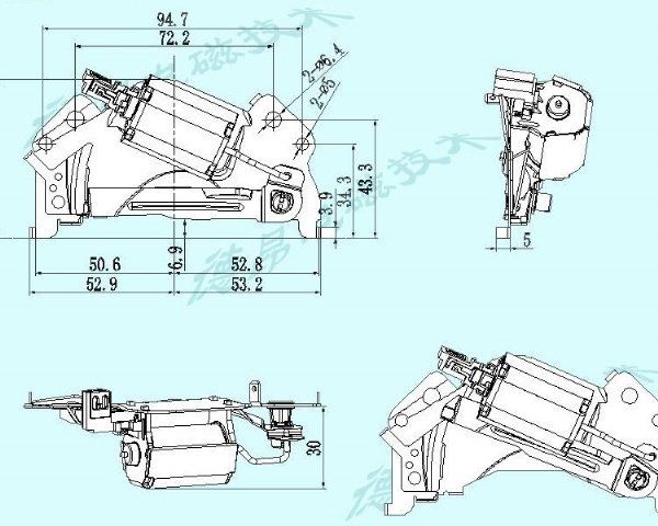 车灯电磁铁此类框架式电磁铁主要应用于各类汽车、摩托车灯及氙气大灯切换等装置设备等,此款产品采用耐温200度以上材料加工制作而成,可在高温下正常工作。
