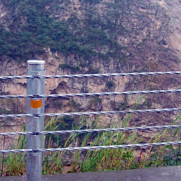 缆索护栏是柔性护栏的主要代表形式,它是一种以数根施加初张力的缆索固定于立柱上而组成的结构,它主要依靠缆索的拉应力来抵抗车辆的碰撞,吸收碰撞能量。缆索护栏属柔性结构,车辆碰撞时缆索在弹性范围内工作,可以重复使用,容易修复。立柱间距比较灵活,受不均匀沉陷的影响较小。风景区公路采用缆索护栏较为美观。积雪地区,缆索护栏对扫雪的障碍稍少。