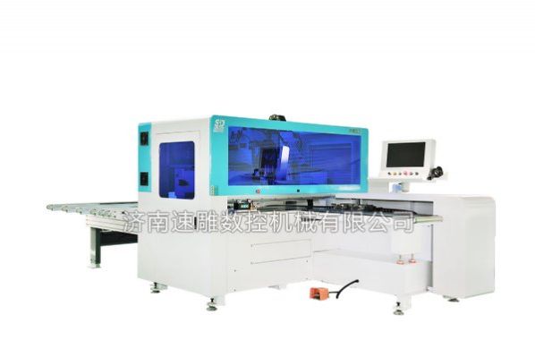 板式家具生产中打孔、开槽、铣型工艺的全自动设备。速雕六面钻六面打孔,双面划槽,一次完成加工件正反面和四个侧孔所有孔位的加工,不需要人工进行捡板,实现高速度高精度的孔位加工。数控六面钻一般搭配
