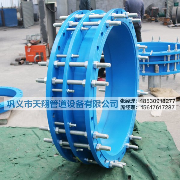 传力接头是泵、阀门,管道等设备与管道连接的新产品,通过全螺栓把它们连接起来,使其成为整体,并有一定的位移量,方便安装。可承受管线的轴向压力。这样就可以在安装维修时,根据现场安装尺寸进行调整,在工作时,不仅提高工作效率,而且对泵、阀们等管道