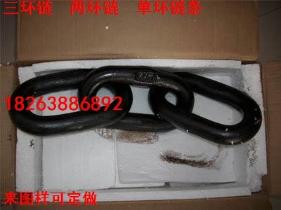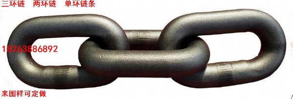 矿用三环链产品选用优质材料经模锻成型,中环经特殊焊接工艺加工、锻压,并严格进行 表面探伤检查,确保该 产品的使用安全性,矿用三环链产品适用于矿井煤矿、矿车三环链、矿石等各种 物质的运输矿车连接,三环链分为矿用锻打三环链和矿用焊接三环链,根据使用的矿车吨位不同分为不同的规格的三环链。具体订货的时候可来电咨询!