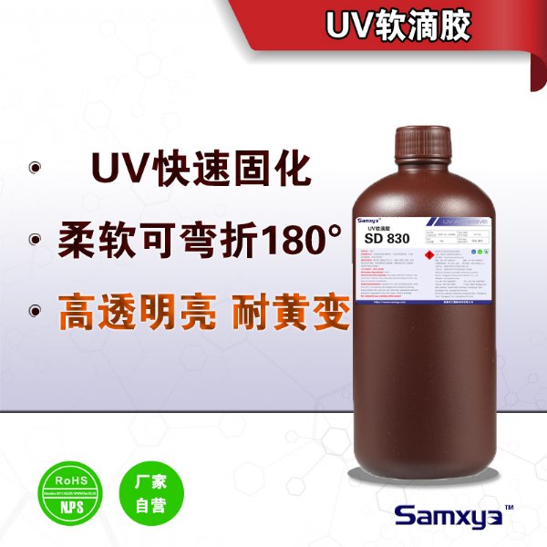 Samxya SD830是一款紫外线光快速固化的水晶软滴胶。主要用于制作水晶滴胶、手机壳饰品等工艺品,该产品具有低气味、高透明等优异性能,仅需30秒即可完全固化,大幅度提高工作效率,固化后胶体柔软可耐弯折180°,高透明亮,适合用于制作精美工艺饰品。