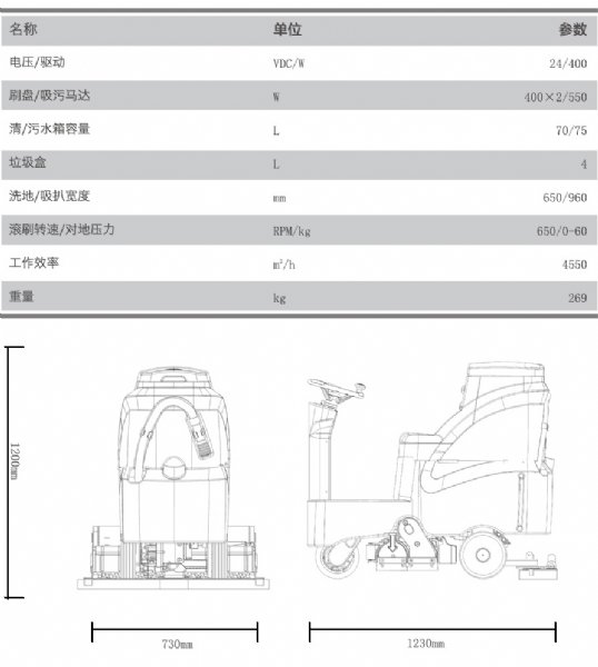 滚刷转速/对地压力: 650RPM/0-60kg