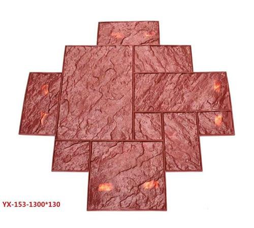 5.上色后的混凝土平整光洁后,印上脱模粉,进行花纹成型。将模具按设计要求铺设;