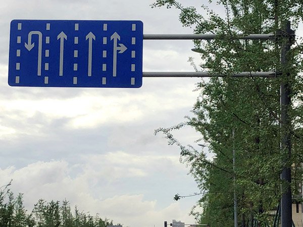 6. 通过滑动螺栓、抱箍等连接配件将标志板固定于支柱上;柱式标志的标志板内缘距路肩边缘的距离应保证20cm,单柱式标志牌下缘距路面高度应保证250cm,悬臂式安装净空须保证距路面5.2m;
