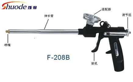 喷嘴上;(注意:没有使用时需用清洗剂清洗,切勿用硬物清除枪各个部位免得泡沫剂泄漏。)