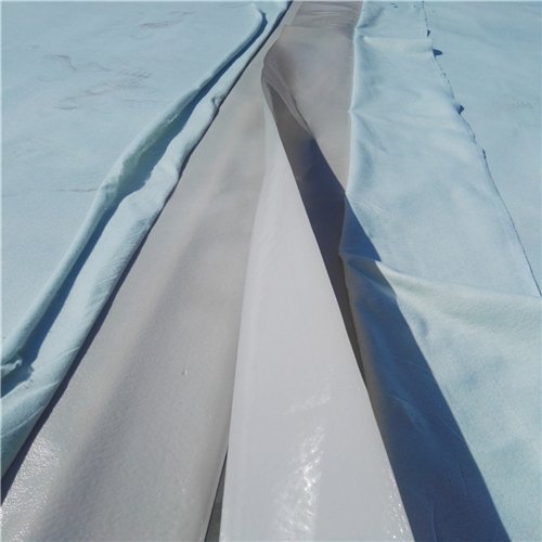施工注意事项:铺设一布一膜时,一定要由上而上的铺设。膜与膜之间及膜与基面之间要压平贴紧,但不宜将膜拉得过紧,一般要略松一点,但不能在膜底留有气泡。因为一布一膜比较薄且很轻,铺好以后,在未铺好保护层以前,极易被风吹动,所以一次铺膜面积不宜达大,边铺膜边盖保护层土料。回填保护层及砌筑块石护面时,一定要轻放,以免撞破一布一膜。