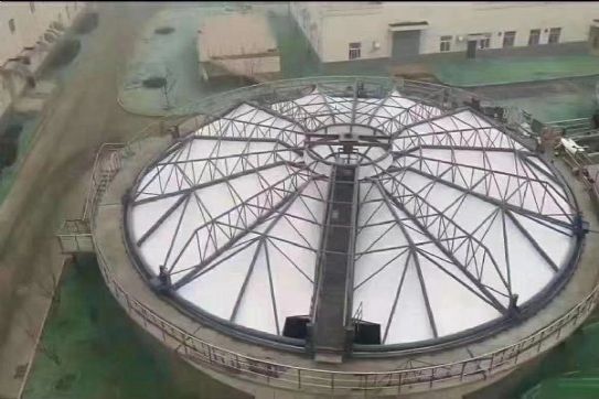 6、污水池加盖膜结构用可以满足除臭生物菌的生存需要,保温性强,单层膜材保温性能与砖墙相当,既可以防止夏季高温,又能抵御冬季低温。