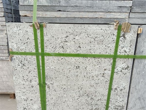 青石板火烧面与荔枝面板与光面板对比,那种质感以及特色相去甚远了,也是石材显出来的多面性。板材经过火烧或粗凿处理后,它的板面就变得有点不平,不管是空气中的灰尘或者是安装时不小心留下来的沙浆都很容易粘到板面上,这样是很难清洗的,可以看到一些室外石材地面变成灰黑灰黑的,很难分辩出石材本来面目是红的或绿的,更谈不上美感了。但是这类板材表面防滑性较好,因而在室外也常使用。