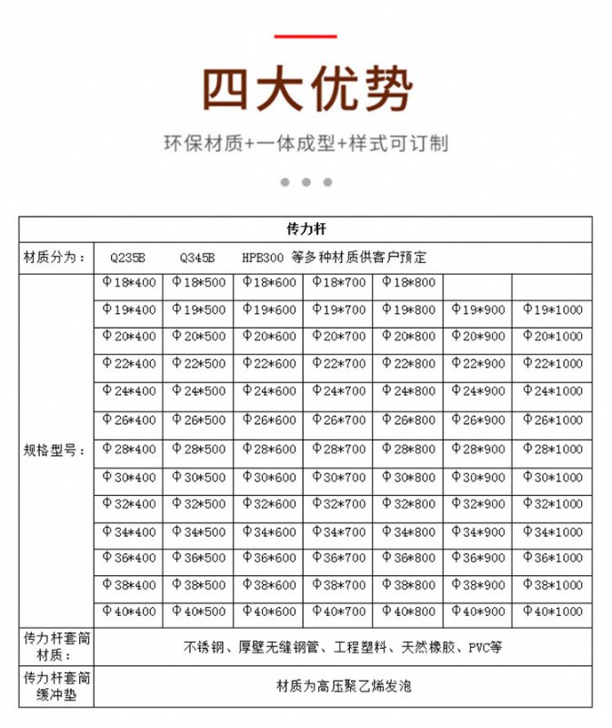 筋。其一端固定在一侧板内,另一端可以在邻侧板内滑动,其作用是在两块路面板之间传递行车荷载和防止错台,增加相邻混凝土块之间的应力传递以防止混凝土路面局部受力较大造成混凝土路面不均匀沉降,传递应力使相邻混凝土块共同受力。