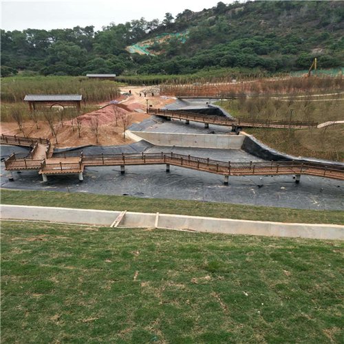 3、当砂卵石层太厚时,可不挖至基岩,而将土工膜向上游平铺一定距离,形成不透水铺盖。所需长度应由计算确定,铺膜地面应先平整,铺厚30公分的粒径为20毫米的