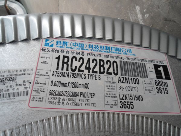 0.426*1000-1200*C 镀55%铝锌 AZ100g/㎡ 钛白色2841
