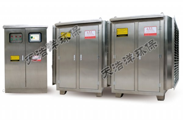 净化设备后,净化设备运用高能UV紫外线光束及臭氧对恶臭气体进行协同分解氧化反应,使恶臭气体物质其降解转化成低分子化合物、水和二氧化碳,再通过排