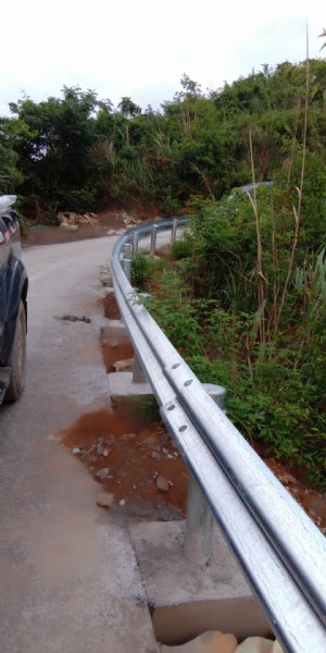 2:三波波形梁护栏板,尺寸4320*506*85*4, 护栏板总长度4.32米(装置终了后净剩4米)立柱间距4米。 栏板的宽度506MM,厚度:4MM。