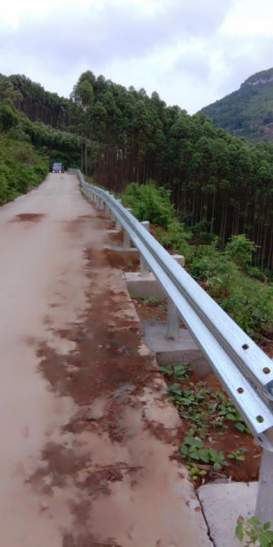 护栏板及两者之间固定夹放的两支护栏立柱构成。其主要是为了避免失控车辆冲出道路,依据公路等级不同而采用不同的规格。