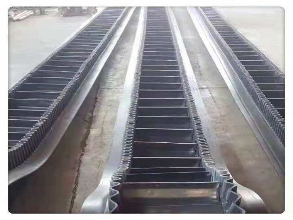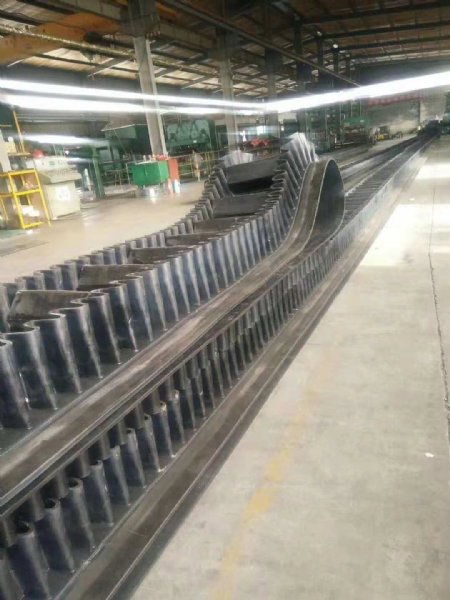 滚筒,挡边设计成波纹状;横隔板的作用是承托物料,为了实现大倾角输送,采用T型TC型。档边和横隔板是用二次硫化的方法与基带连接的,具有很高的连接强度。