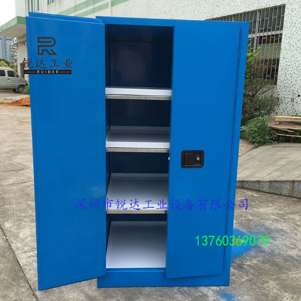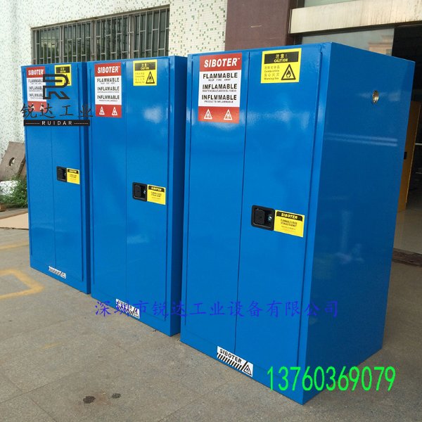 蓝色防火安全柜在国际上代表专业储存腐蚀性液体化学品。如:硫酸、氢氧化钠、漂白水、洗板水、甲醛、任何类型,烷基硫酸等腐蚀性的酸基化学品等。